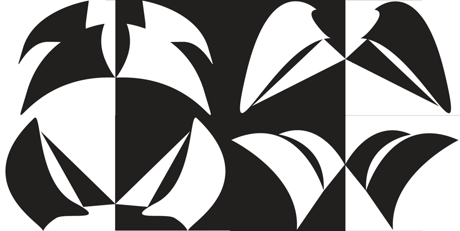 I like the original square, but the expanded version has too much white space. I decided to create a repeating design based on the square and using the Notan ‘rules’. Here’s a revised version of the “expanded” square with all the sails folded out along the vertical sides of the square.