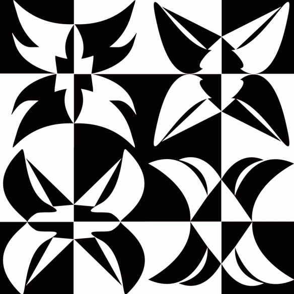 From this I copied the various parts, reversed the black and white, and mirrored the images to get the repeating tile below.