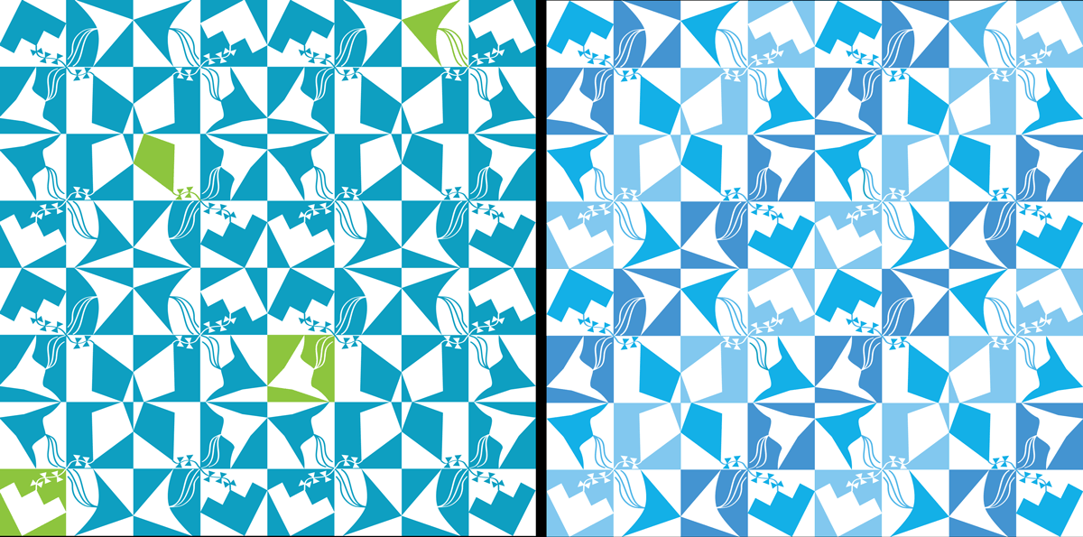 And here’s what it looks like in a repeat. The two blues create a strong diagonal pattern.