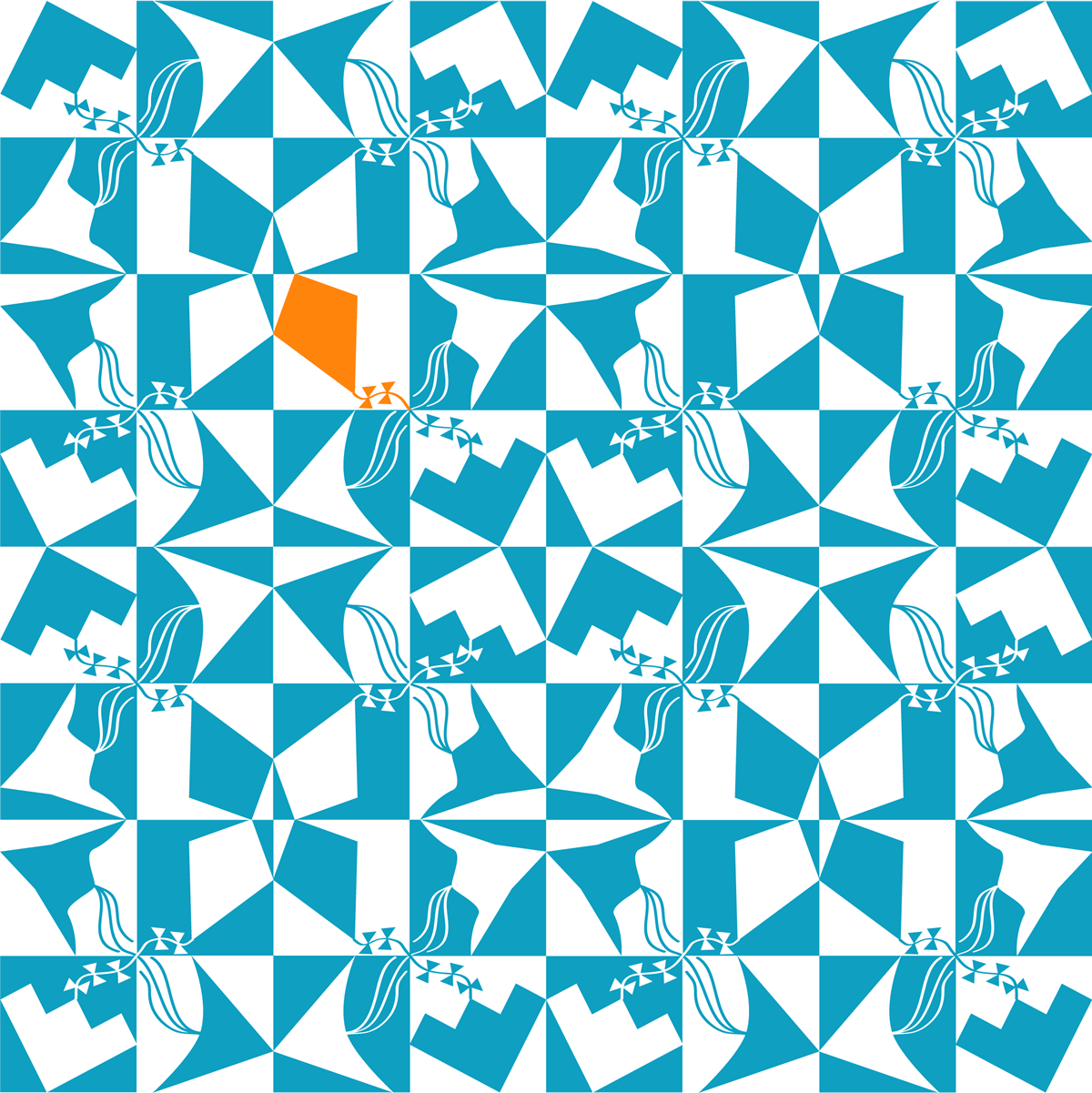 This was getting better. The tails still seemed a bit clunky, so I redrew them again. This time I connected them diagonally and I changed the type of tail on some of the kites. I also made one of the kites orange to add some variety.