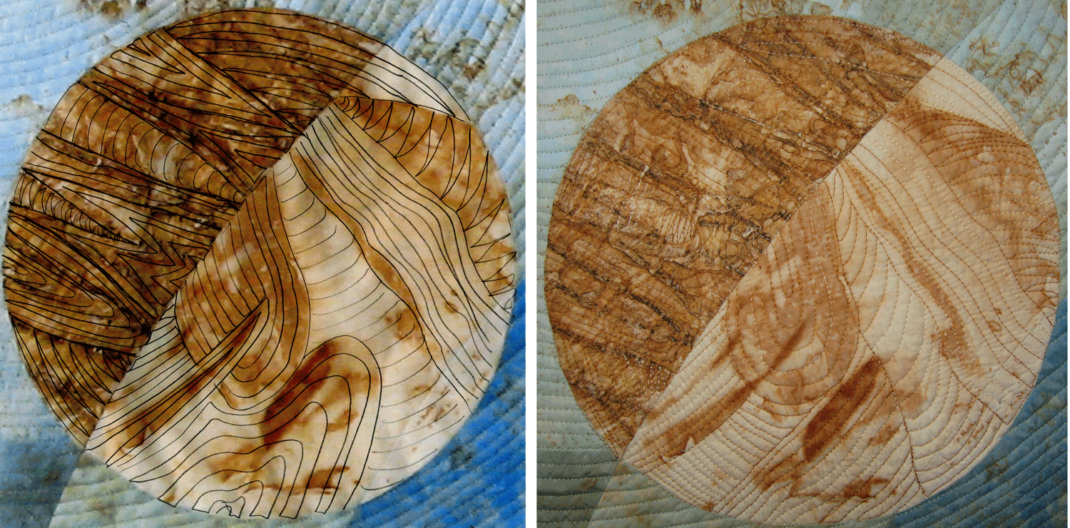 The rust pattern on this moon reminded me of a bird, so I tried to capture that in the quilting.