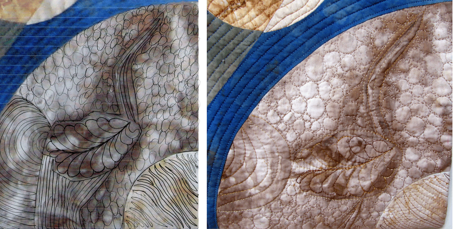 Here’s one example of my sketch (on the left) and the actual quilting (on the right).