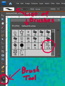 After creating a new brush, Photoshop gives you some options to manage the brush. You can change the Size, the Painting Mode, the Opacity and features of the brush, such as its angle. The screen shot below shows the location of these different options.