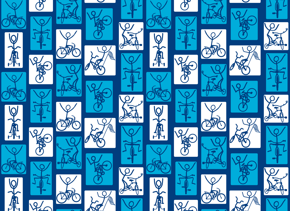 This bicycle design. Look Ma, No Hands, is one I did for a recent contest on Spoonflower. The full design is below, with the black rectangle denoting the boundaries of the repeat.