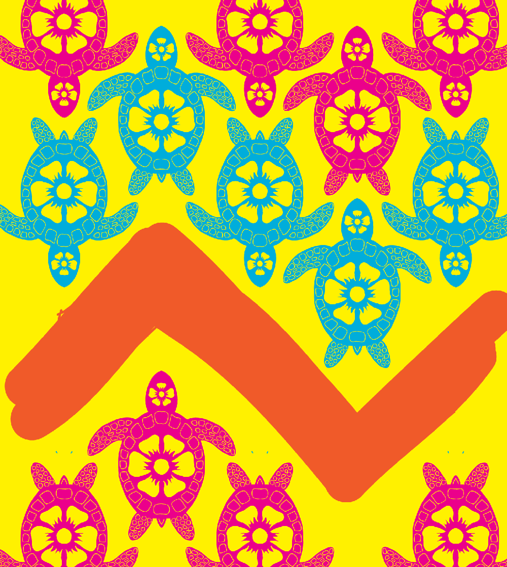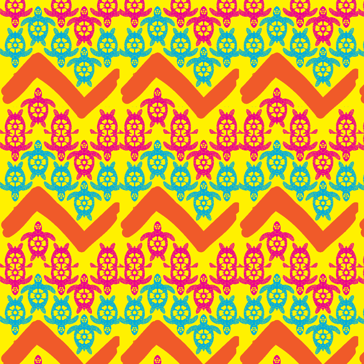 I wanted to try and eliminate the zigzag stripes and use only the turtles to create the chevron pattern. Here’s one version that I developed.