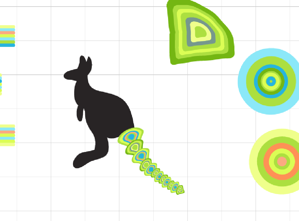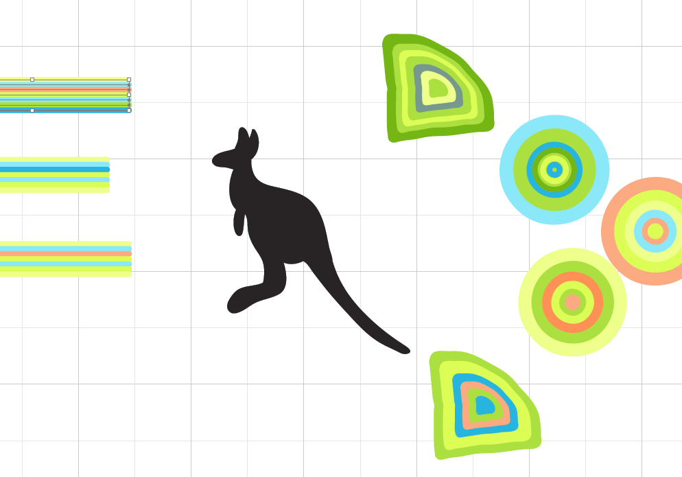 I copied various shapes along with the kangaroo onto one layer in Illustrator.