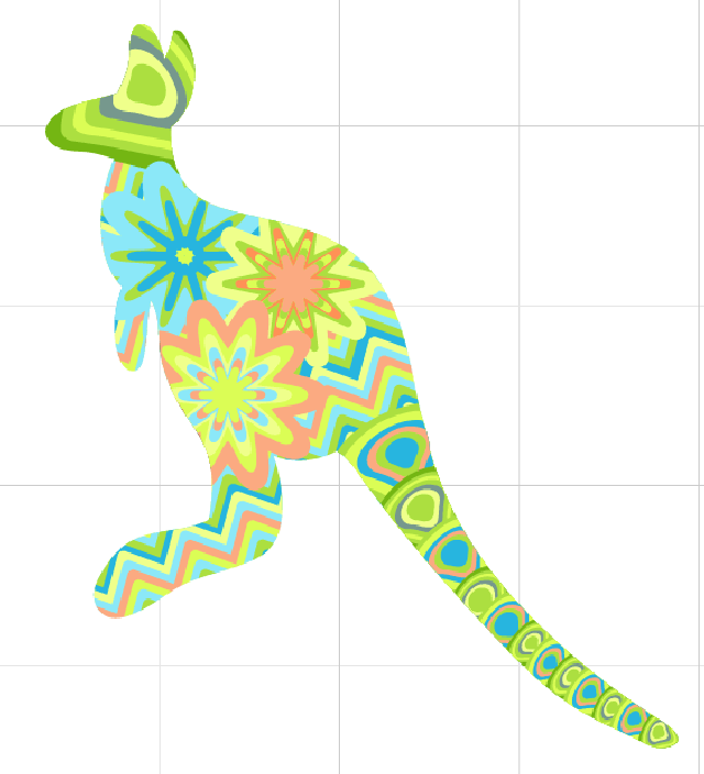 And here’s the result. One of the reasons I liked using clipping masks for this was that it lets me keep the kangaroo outline (the mask) separate from the artwork inside the kangaroo. Then I can edit the mask separately from the artwork, changing either one if I want. I can also ‘release’ the clipping mask and start over.