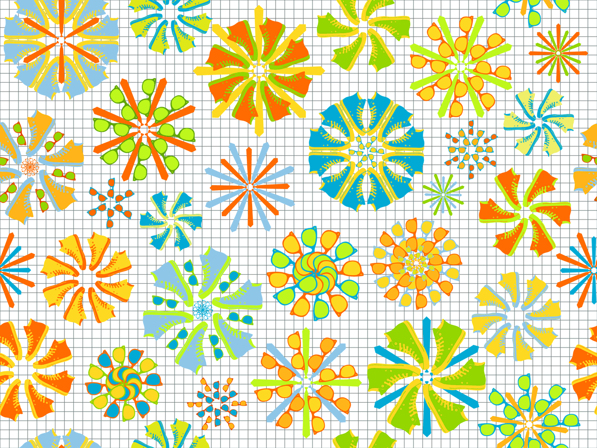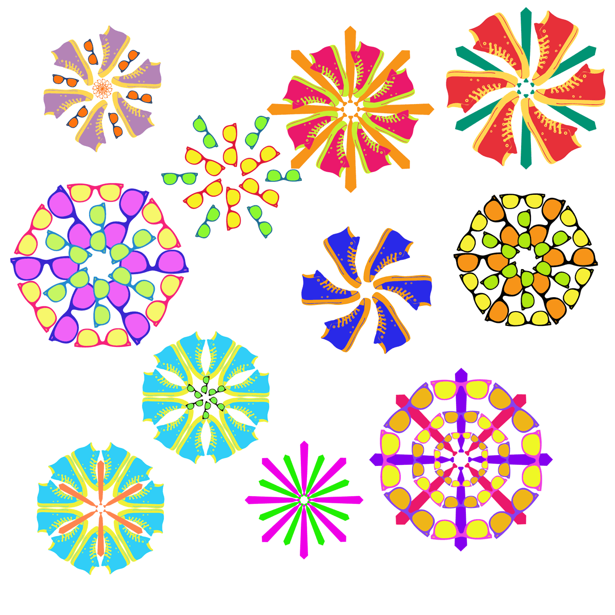 In the end, I settled on using the skinny tie, the sneaker and the glasses as the components of my designs. I wanted the designs to look like flowers from a distance, but reveal the geek components on closer inspection.