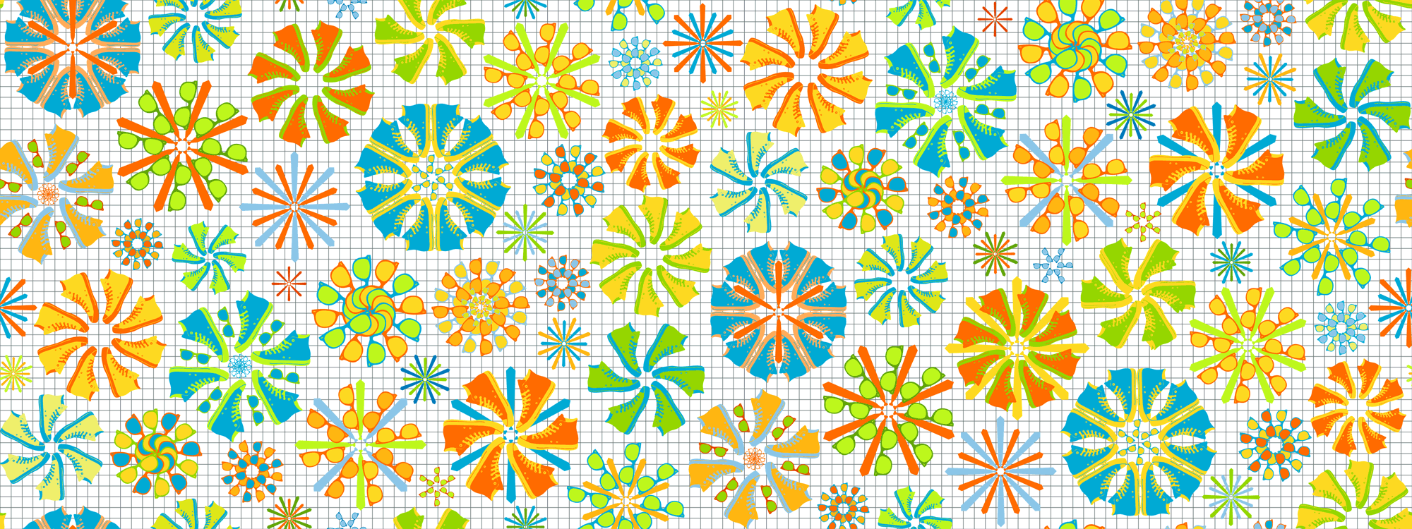 I thought the regularity of the larger-scale elements was a bit too noticeable, so I changed the design to a half-drop repeat. I had to fiddle around with the placement of the designs to make the half-drop work, much like the steps I used in this earlier post about a half-brick repeat.