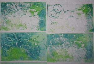 Gelatin monoprinting can also give some unexpected results, and despite its name, you can sometimes get multiple prints from one go. Shaving cream marbling on fabric can be done using dyes, inks or paints.
