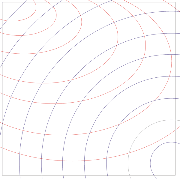 Once I had the quilt top designed, I used Photoshop to ‘bend’ the striped fabrics to fit the curves in the quilt design. The orange/gray striped fabric was engineered to fit the red lines in the quilt design, and the blue/green striped fabric was engineered to fit the blue lines in the quilt design.