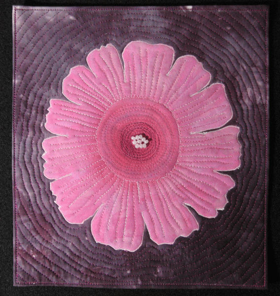 Gloxinia Published January 20, 2011 at 568 × 600 in AAQI Quilts Gloxinia 9″ by 10″. Hand-dyed fabric, beads and lots of thread.
