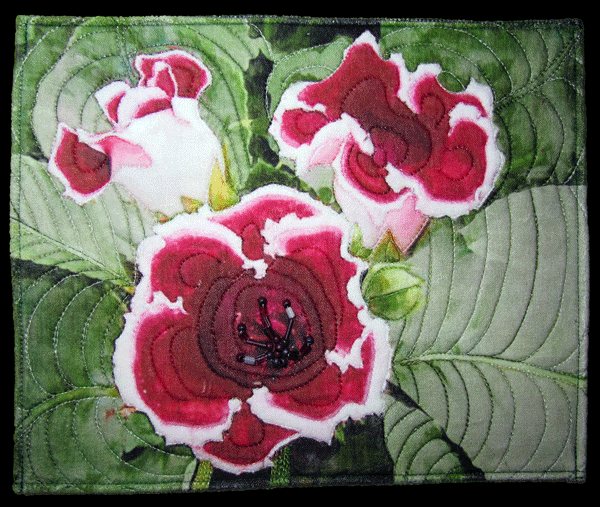 My mother was an avid gardener and her most successful indoor flowers were Gloxinias. I don’t see gloxinias very often any more, but when I do, they always remind me of her. The velvety texture of the flowers and leaves seemed to be a perfect match for printing one of my photos on velvet.