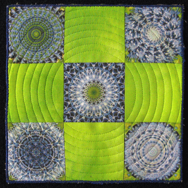 Kaleidoscopic Garden #2 Published January 20, 2011 at 598 × 600 in AAQI Quilts Kaleidoscopic Garden #2 7.5″ by 7.5″. Photos printed on fabric, and hand-dyed fabric. My mother was a writer of gardening books and a photographer. Using my photographs of flowers from my garden, I created the fabric for this quilt in honor of her.