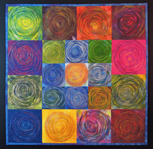 Circles Published January 21, 2011 at 600 × 586 in Quilts 2007 – 2009 Circles 37″ by 37″. 2007. Hand-dyed fabrics were discharged using bleach pens and then colored with Paintstiks.