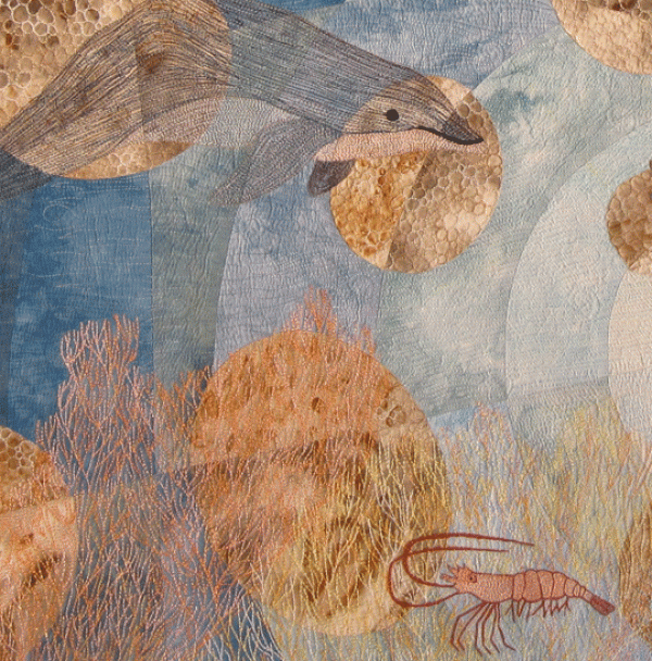 Oil and Water Don’t Mix (version 2) – Detail Published January 19, 2011 at 600 × 608 in Recent Quilts Oil and Water Don’t Mix (version 2) – Detail The detail photo highlights the extensive machine quilting, especially of the various animals.