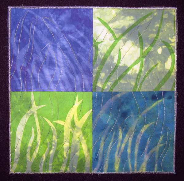 Prairie Published January 24, 2011 at 600 × 591 in Small Quilts Prairie 10″ by 10″. Hand-dyed cotton, discharged and screen printed.