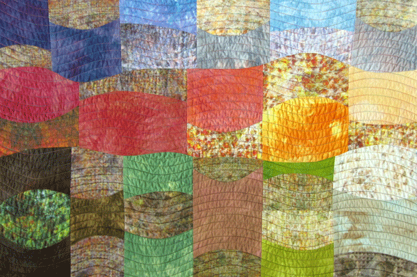 Sunset Over Wisconsin Published February 17, 2011 at 600 × 398 in Small Quilts Sunset Over Wisconsin 26 inches by 17 inches. 2011. This is e a more improvisational quilt than I’ve been doing lately. I thought I’d try to use up a lot of the smaller pieces of fabric I had leftover from previous projects.