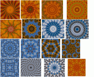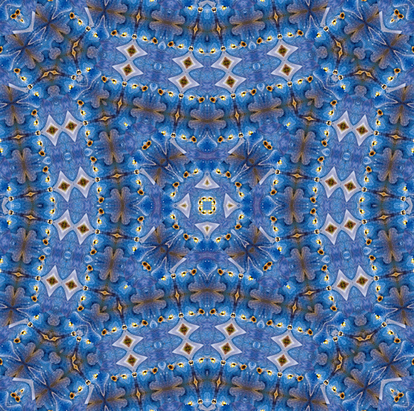 I made various kaleidoscopic images using Photoshop and a free plug-in (available here).