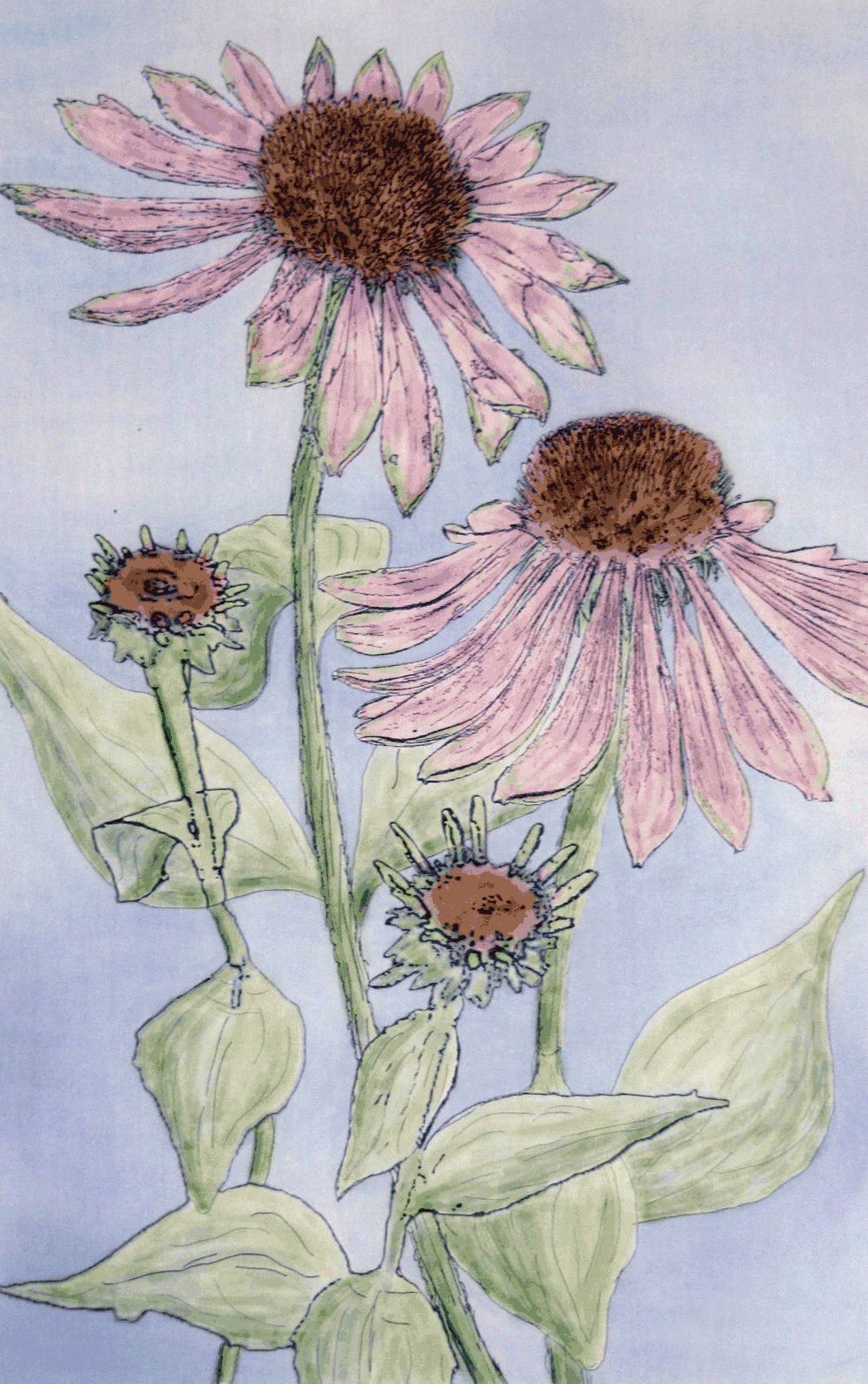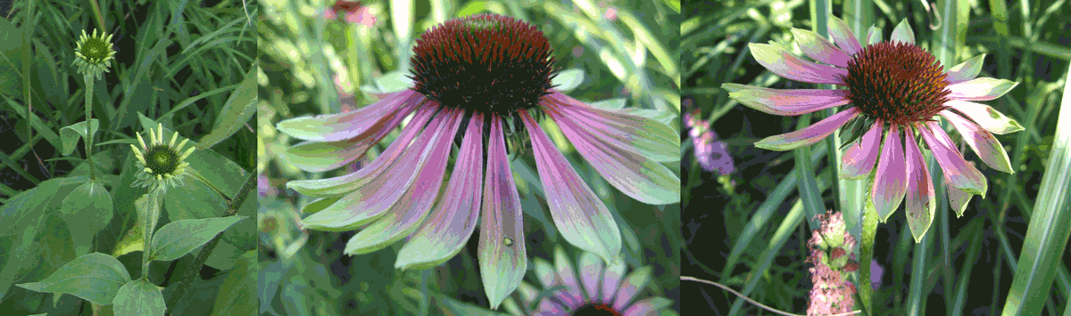 I thought I’d try to make a small quilt with sort of a ‘watercolor’ feel. I started with these photos of coneflowers from my back yard.