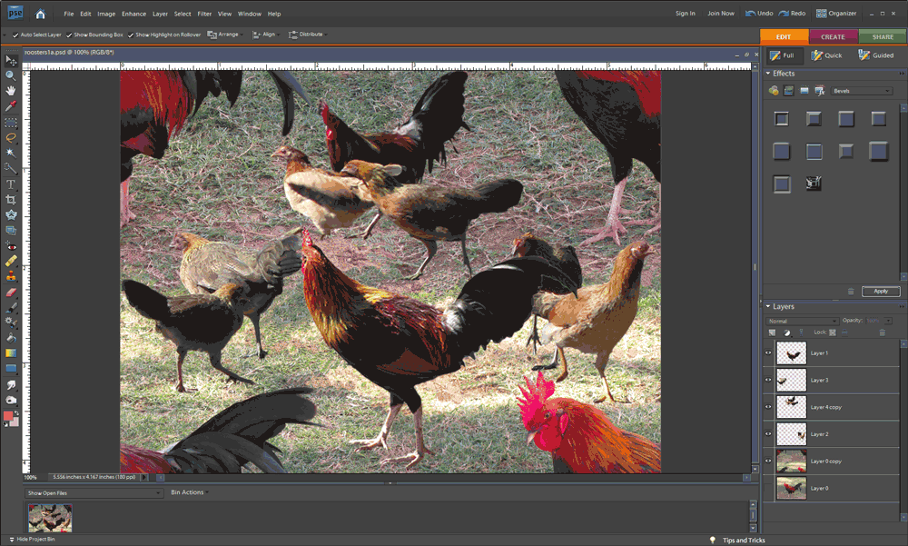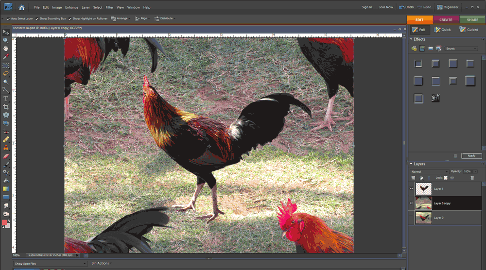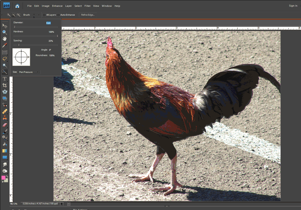When you start your design with a photo or a scanned image, you might have colors in your design that you aren’t sure how they will look printed on fabric. Using Photoshop Elements (or other digital editing tools) you can replace colors in the design with known colors from your color guide. However a photo or scanned image might have thousands of colors, so to make color replacement manageable, the design first needs to be color reduced to a much smaller number of colors.